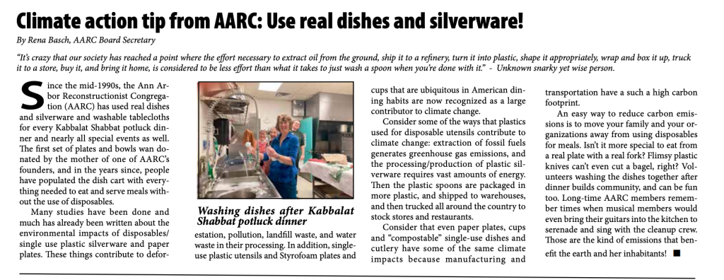 Climate action tip from AARC: Use real dishes and silverware, in May 2025 Washtenaw Jewish News