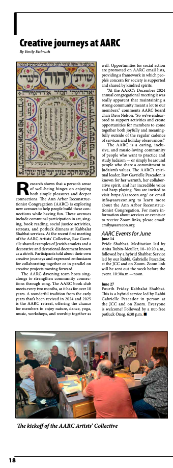 Creative Journeys at AARC, in the June 2025 Washtenaw Jewish News