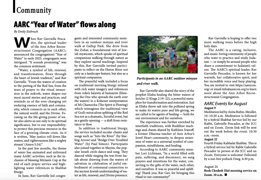 This article on the AARC Year of Water appeared in the August 2025 Washtenaw Jewish News. You can read the article on page 9 in this PDF.