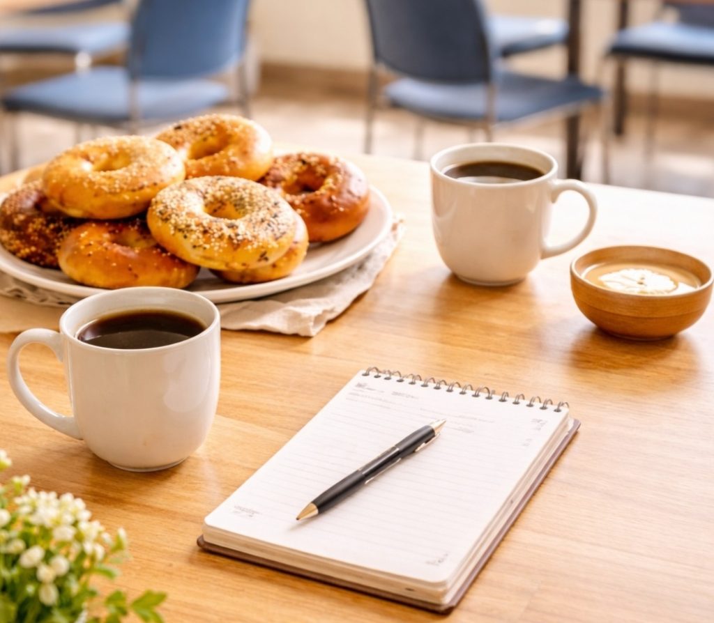 Time: 12:00 – 2:00 pm, bagels, fruit and coffee/tea available.
