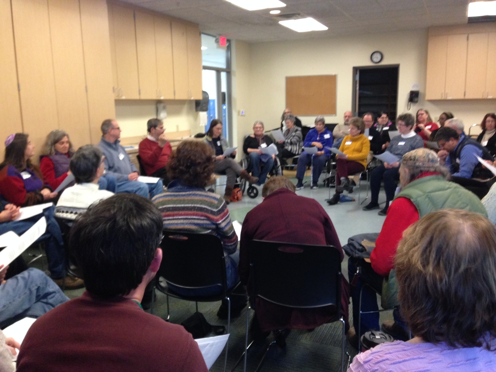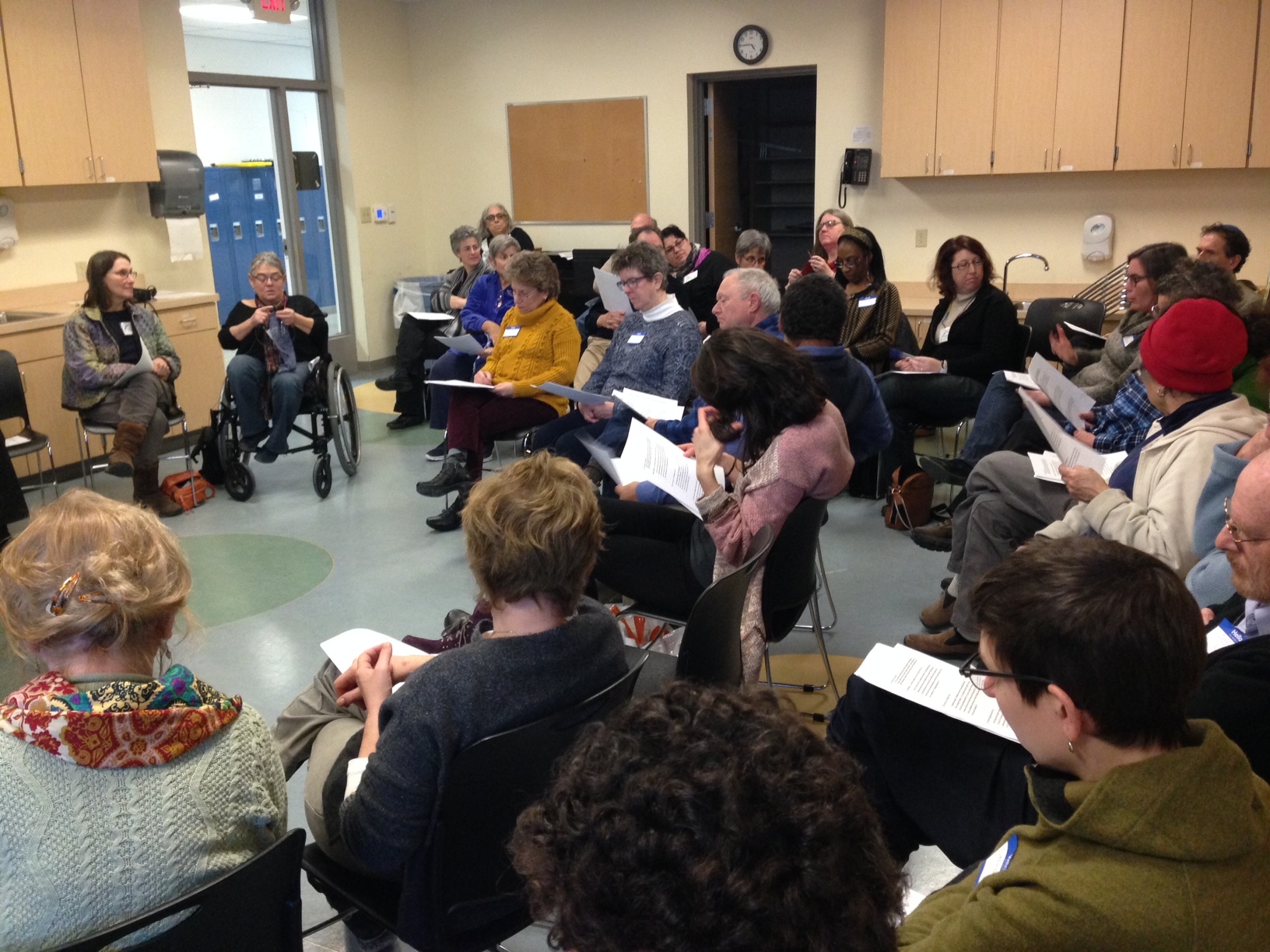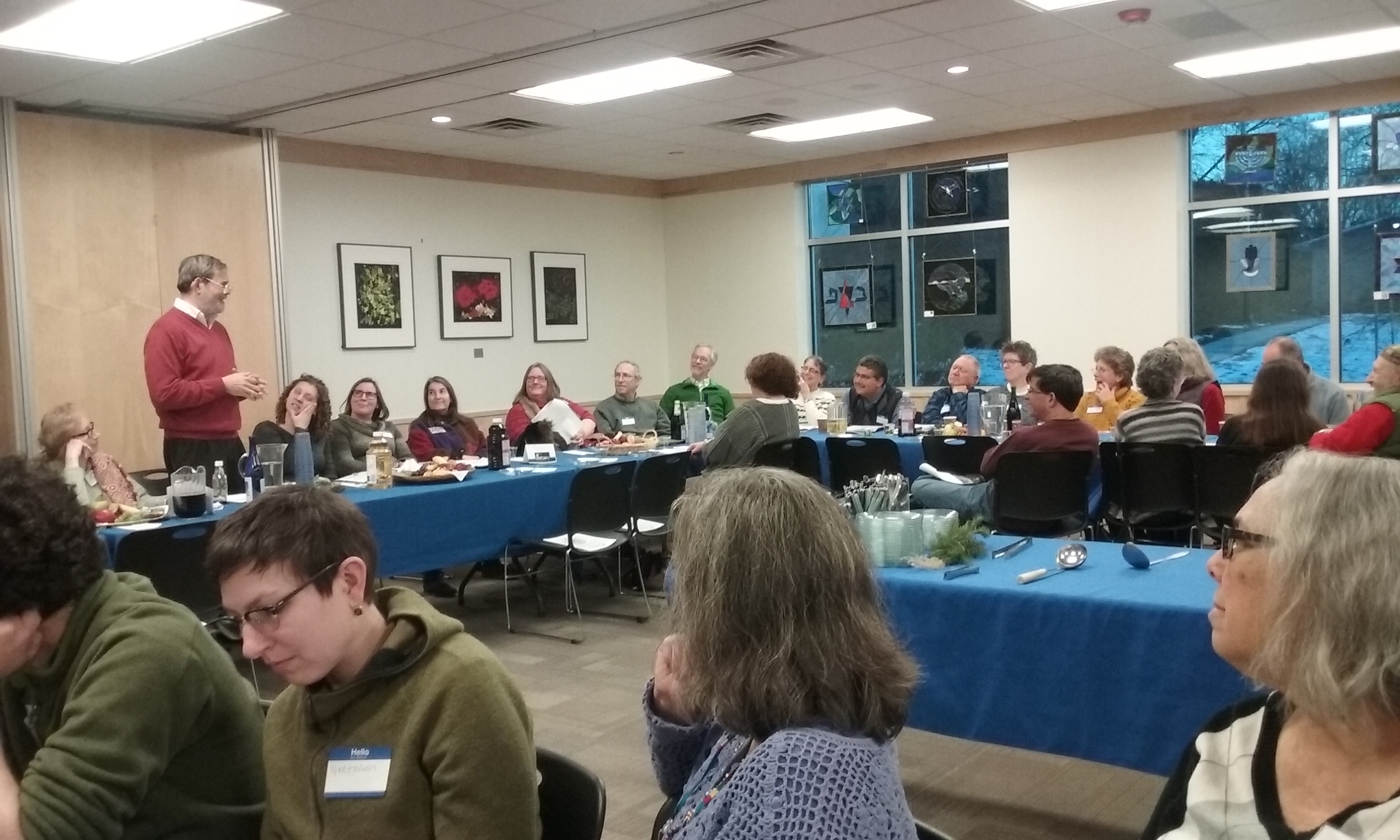 On Saturday evening January 23, AARC visiting rabbi Michael Strassfeld led about 60 people on a ritual journey through the mystical four worlds of the Kabbalists, exploring the different qualities of each world and our relationship to them. The Tu B’Shevat seder, modeled loosely after the Passover seder, was created by the mystics of S’fad in the 16th century, but the original holiday itself grew out of ancient tithing, and later was associated with planting trees in Israel and caring for the land.